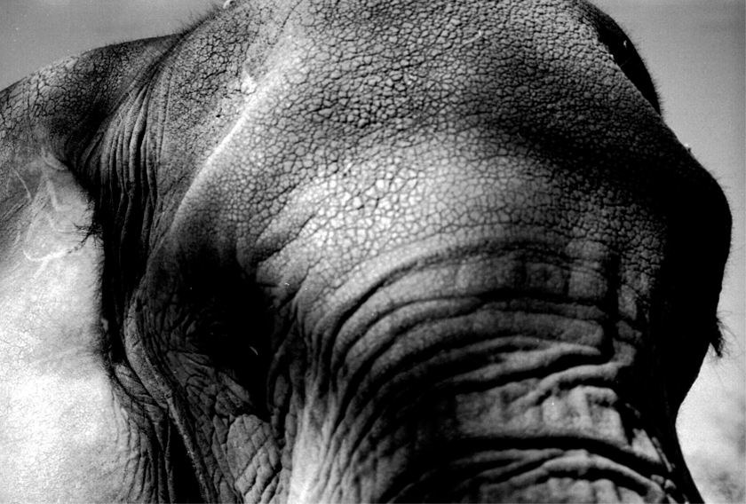 As if the night air has muscle, it flexes, then strengthens, when a bulky umber apparition condenses out of darkness. Doug moves away from Thembi as another elephant backs blindly toward us, lifting first the sole of one foot and then another for our inspection, carefully feeling her way. It is an oblong moment, stretched by suspense.