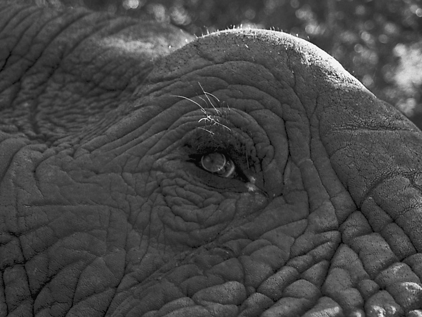 It’s hard to believe an elephant weighing six tons with a huge, restless trunk could sneak up on us. But Jabu has. Like tires with low air pressure, his cushioned feet smother twigs, branches and the sound of his own footfalls. He is amazingly silent as he stands before us. He shifts his weight from one side to the other.