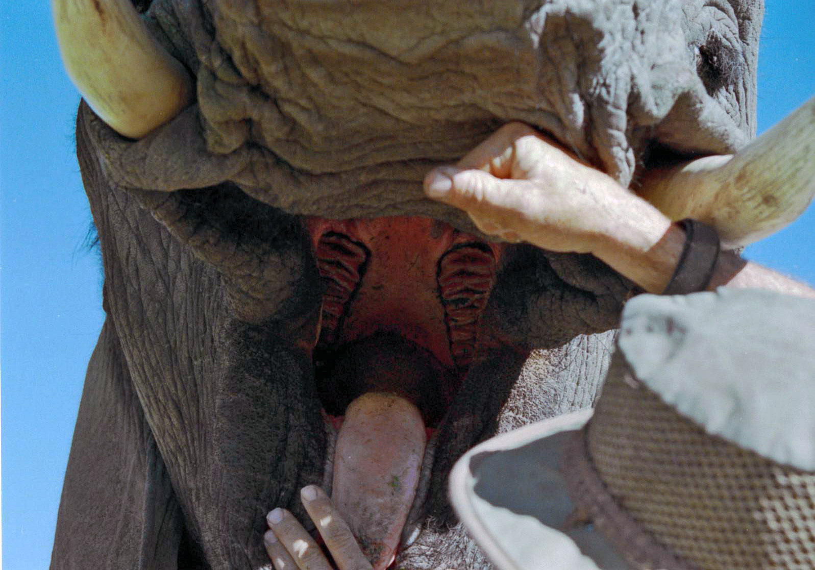 Both male and female African elephants grow tusks – the largest upper incisors on this planet. Their tusks grow every which way: up and curved, or down and straight, up and straight, or down and curved – the variations are endless. Some tusks are thin; others fat. Some are short and puny; others long and magnificent.