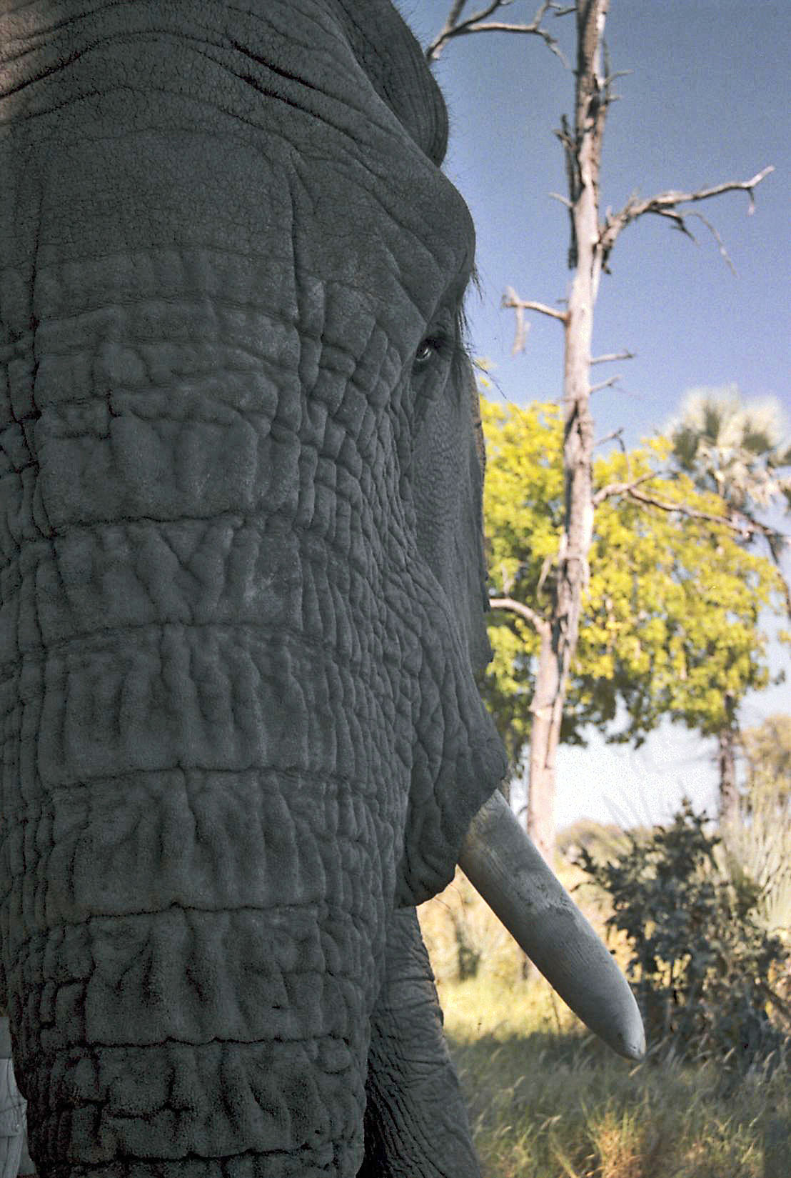 An eye tucked behind a massive trunk.  A body as tall as trees.