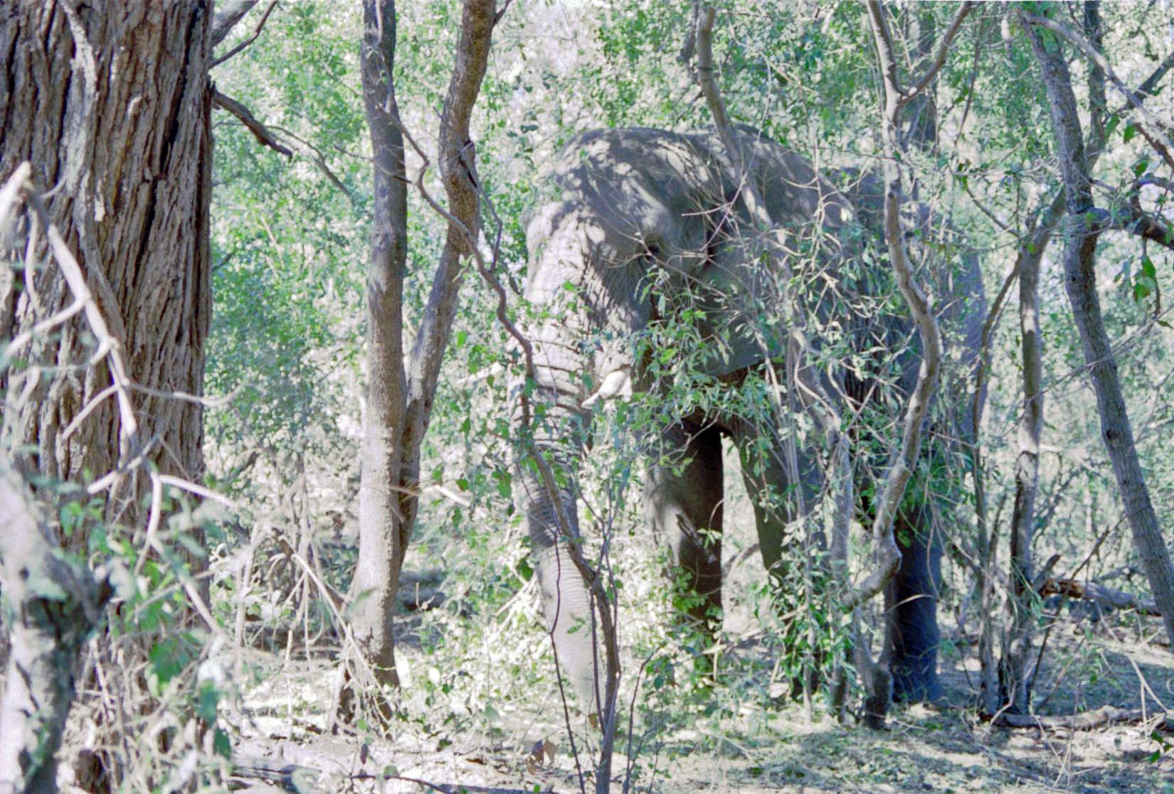 Time twists as I stare out the window at the huge ghost facing me. A giant form conjured from a smear of rhododendrons and shadows lifts his trunk into the wind, changes back into a bush beast with flowers in his stomach, and is extinct once again.