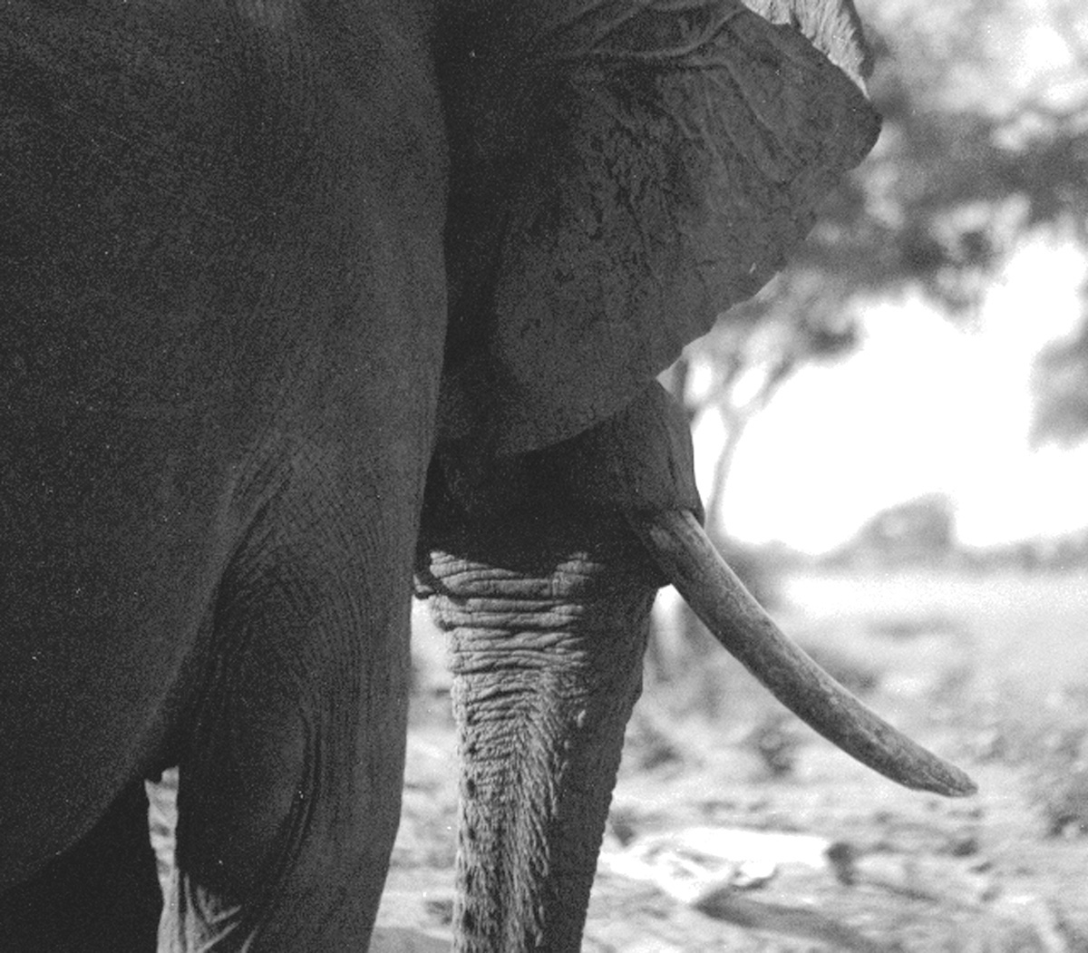 His enormous tusk splayed out almost sideways. I focused on his great head, nodding downward with each step, as he trudged past. A thirsty pilgrim in a parched land, his trek to water was nearly finished. The clicking and whirring of our cameras didn’t alter his gait.