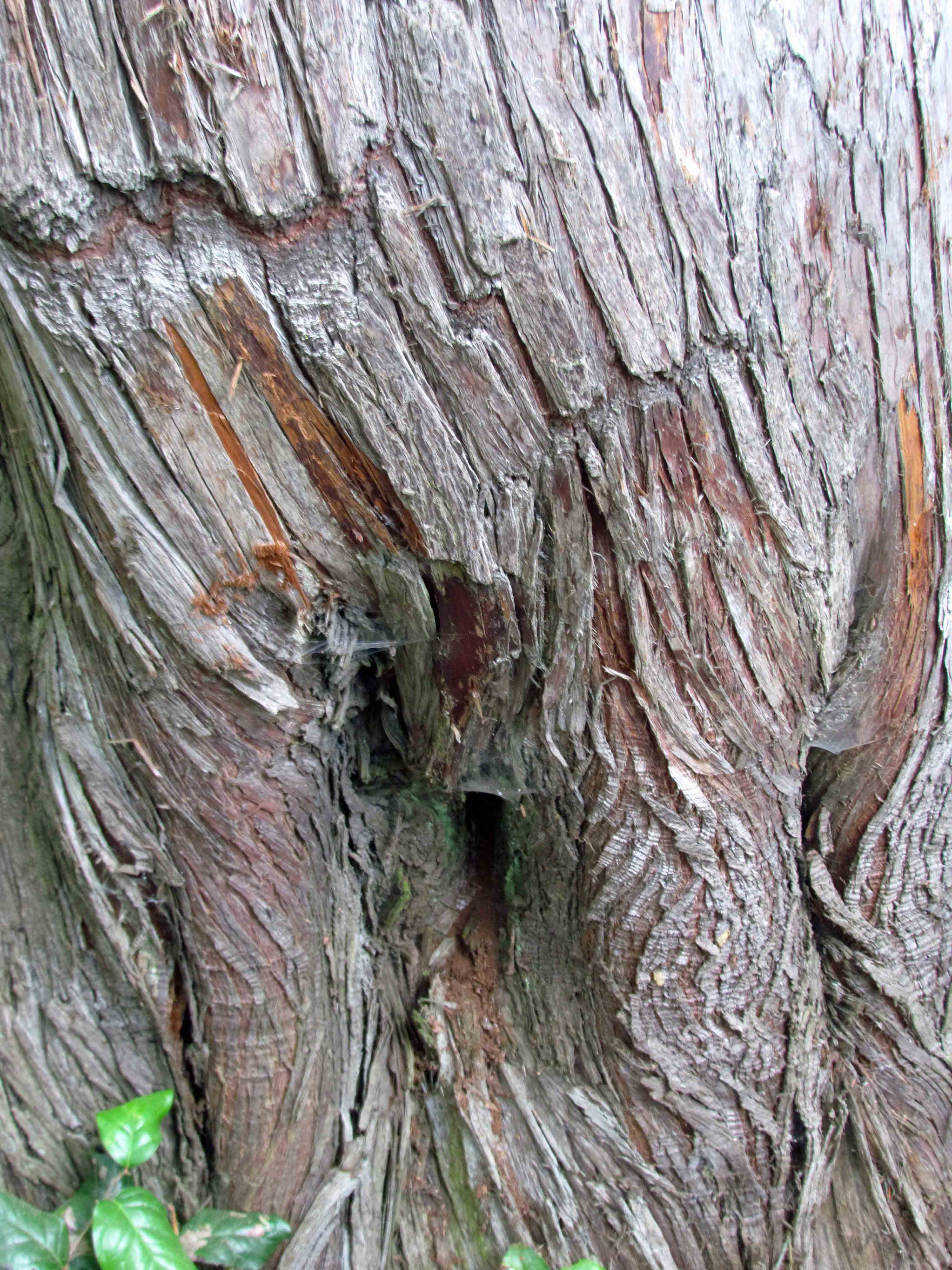 I reach out and touch this frozen young giant – about seven feet tall to the top of his dome. He’ll be ten feet tall when fully grown. Of course he’s impassive, wooden to my touch, but the swirl of his bark/fur makes him seem as if he just stopped as we rounded his corner, hoping to blend in before deciding on our intent.