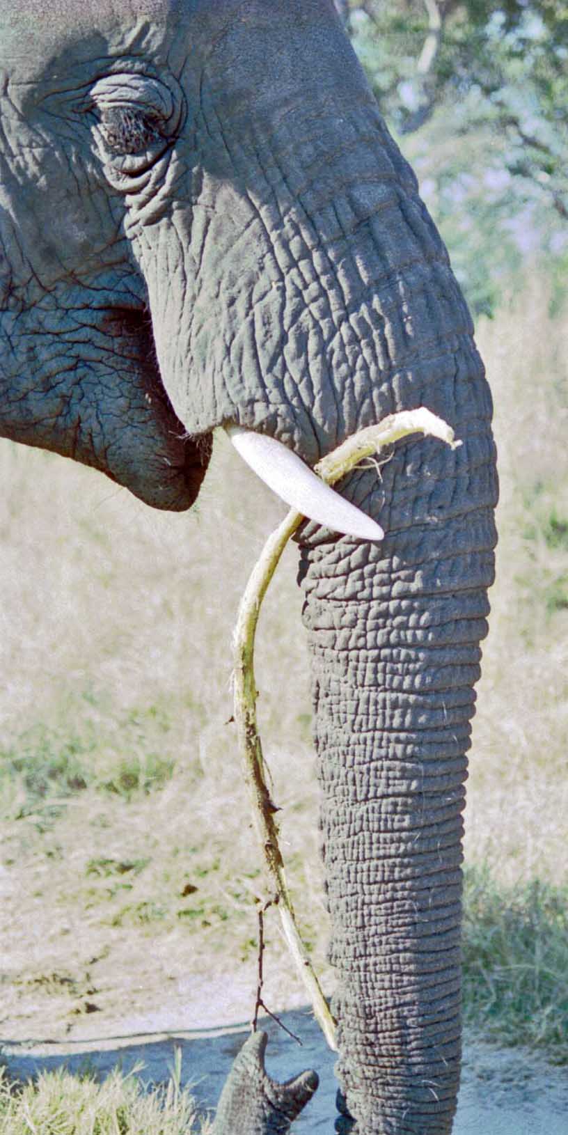 One advantage of Thembi’s size is food efficiency, miles per pound of trees. An elephant eats four to seven percent of its body weight each day – four hundred to six hundred pounds of vegetation. Mice eat a twenty-five percent of their weight daily and hummingbirds two times their own weight, or two hundred percent. If hummingbirds ate trees, the forests of the world would already be gone. Pound for pound, Thembi needs far less food than rodents or birds. And with her size comes another advantage over smaller creatures – a longer life span.